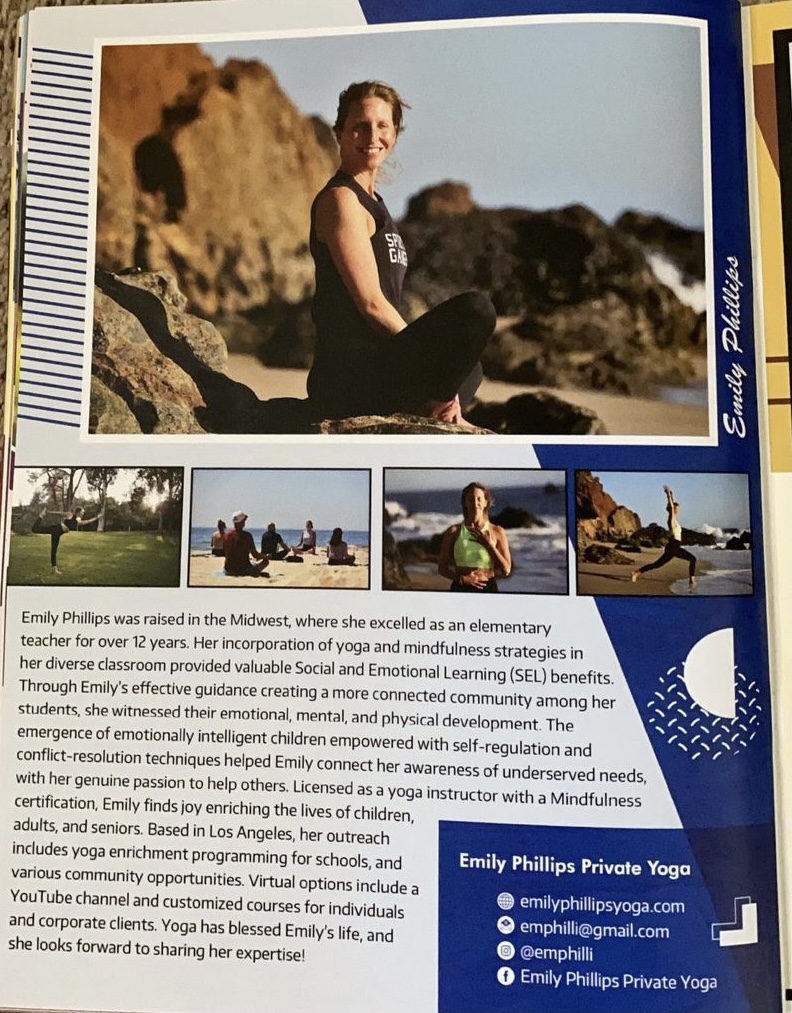 I moved to California to pursue my passion for yoga and mindfulness in 2019. I graduated from a year long course Mindfulness for Educators to help children and adults tap into their breath and yoga in a moving meditation. I also completed a course in Yoga Therapy at Loyola Marymount University, helping all bodies.