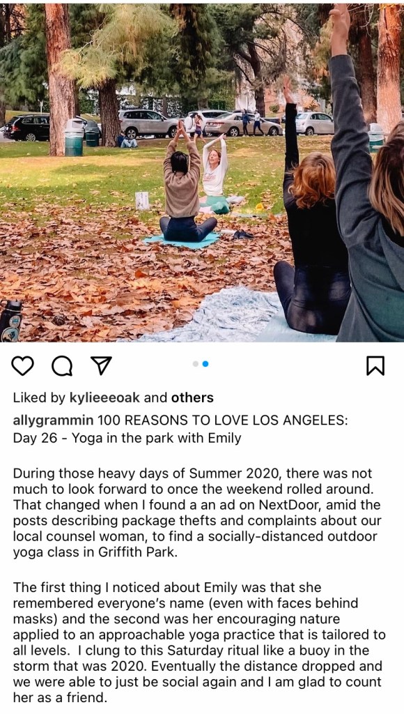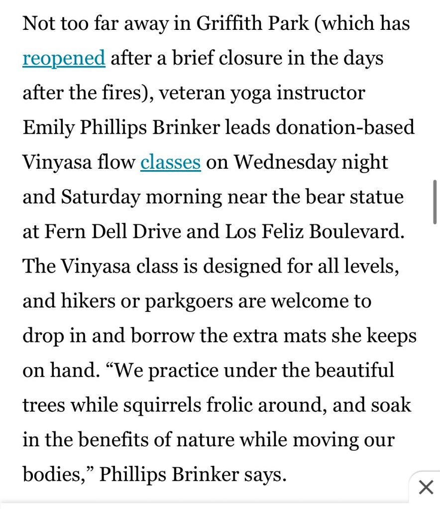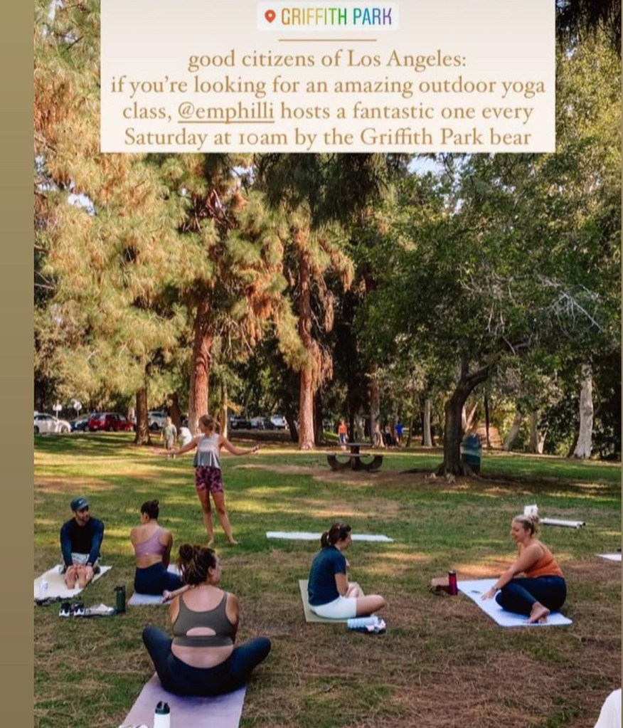 I taught community yoga in Griffith Park for five years! A beautiful group of yogis formed there…I’m excited to announce that I just moved back home to Indianapolis, Indiana! Stay tuned for my local yoga classes.