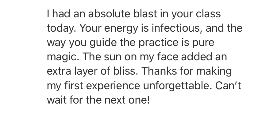 Please reach out if you are interested in a private group yoga session for your family, friends, or colleagues. I will travel to you or your destination.